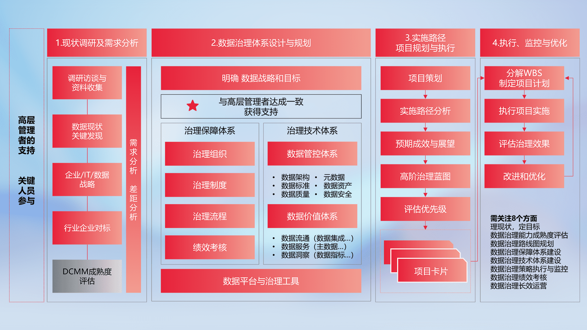 制定并执行统一的数据标准,,规范数据定义和格式,,消除冗余和不一致性,,,,实现跨部门和跨系统的数据一致性,,,为企业提供标准化的数据基础。。。。